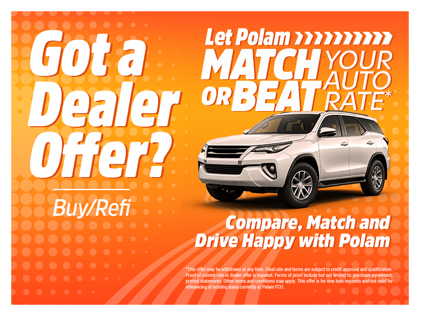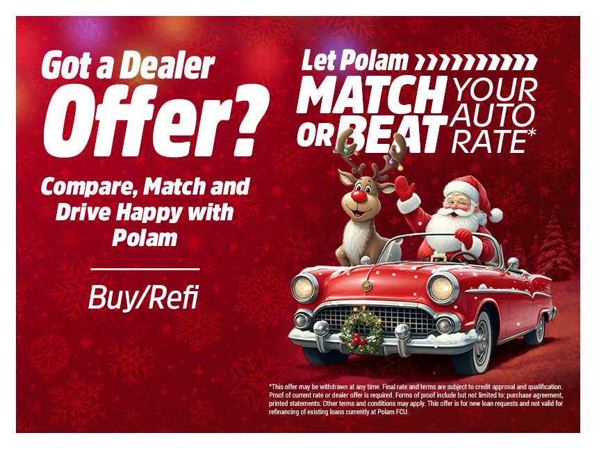 The merchants represented are not sponsors of Polam FCU or otherwise affiliated with Polam FCU. The logos and other identifying marks attached are trademarks of and owned by each represented company and/or its affiliates. Please visit each company’s website for additional terms and conditions.
